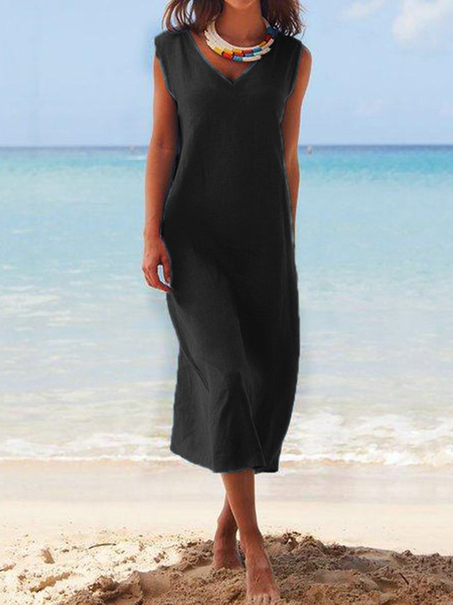Product: Sleeveless V-Neck Multicolor Long Midi Dress