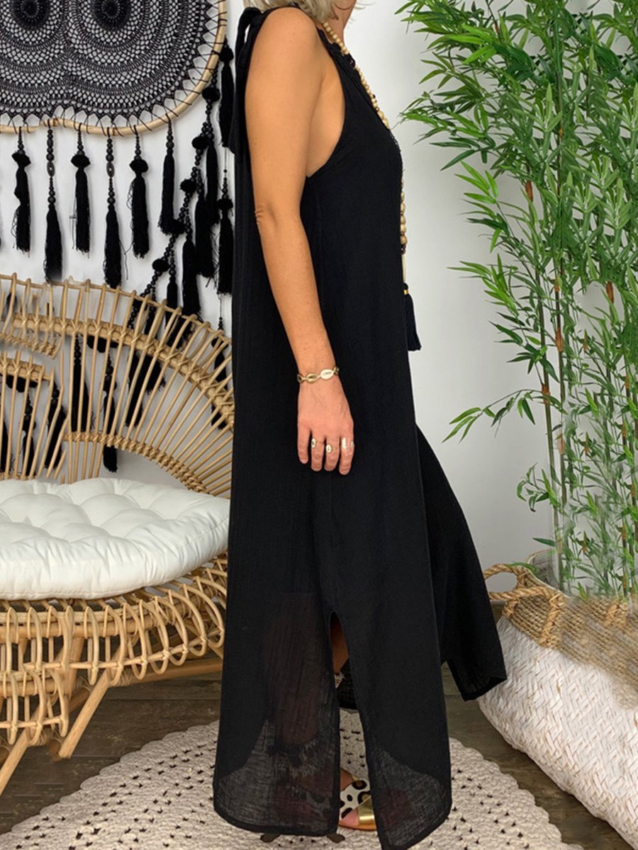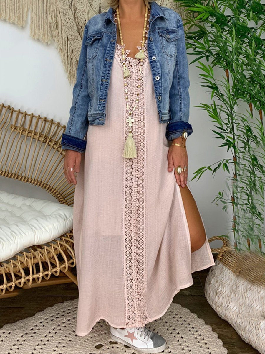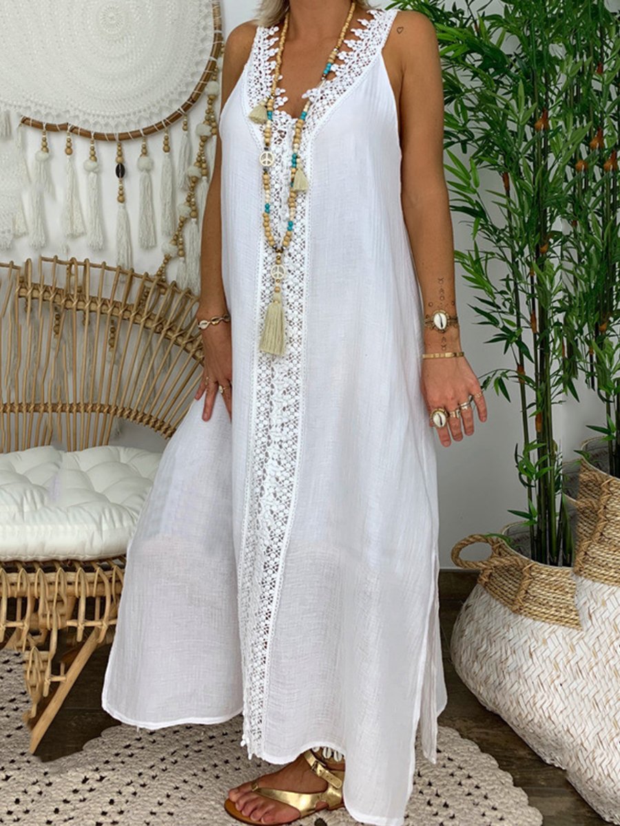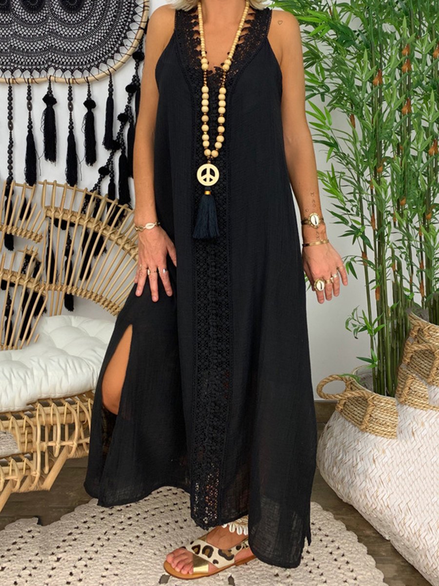 V-neck Sleeveless Lace-paneled Maxi Dress