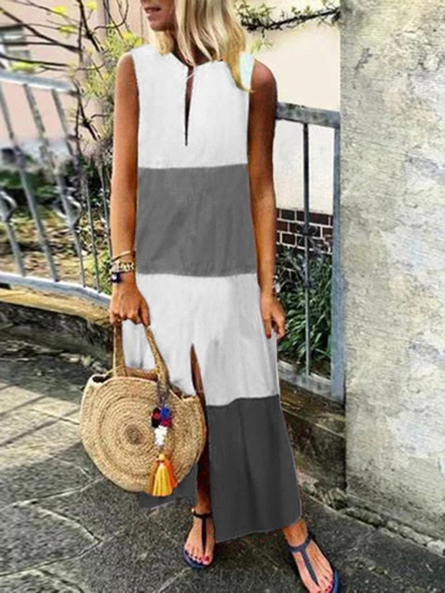 Product: V-neck Sleeveless Loose Cotton Linen Maxi Dress
