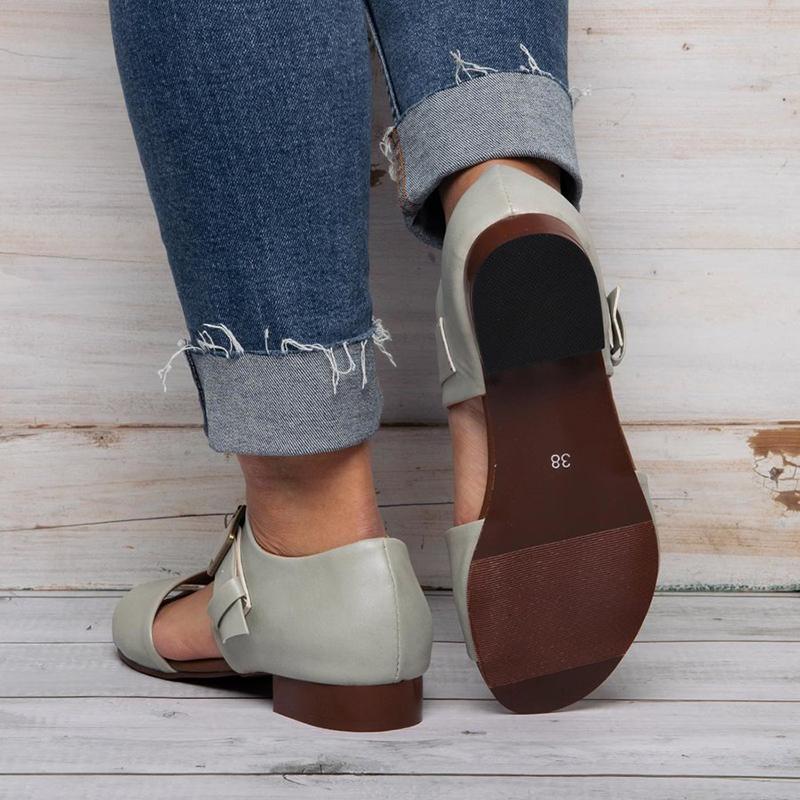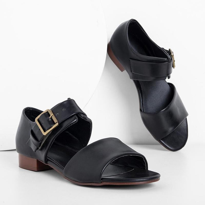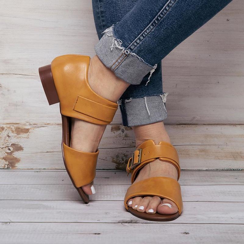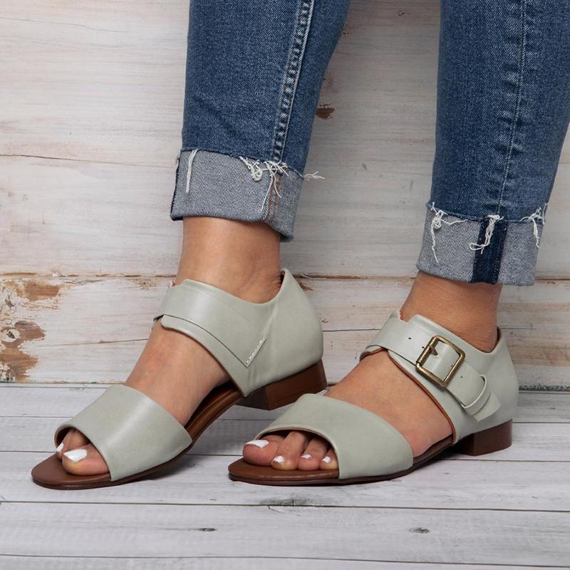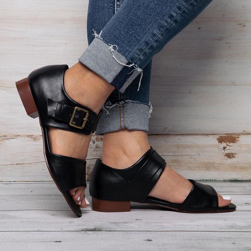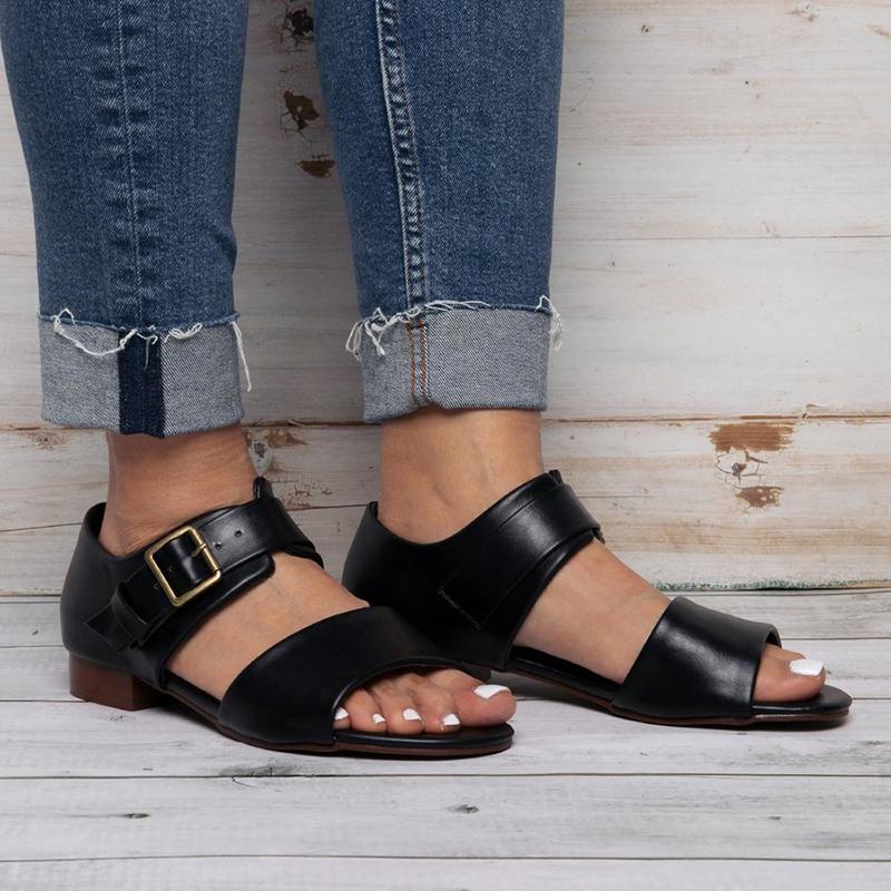 Women Casual Peep Toe Flat Heel Sandals Shoes