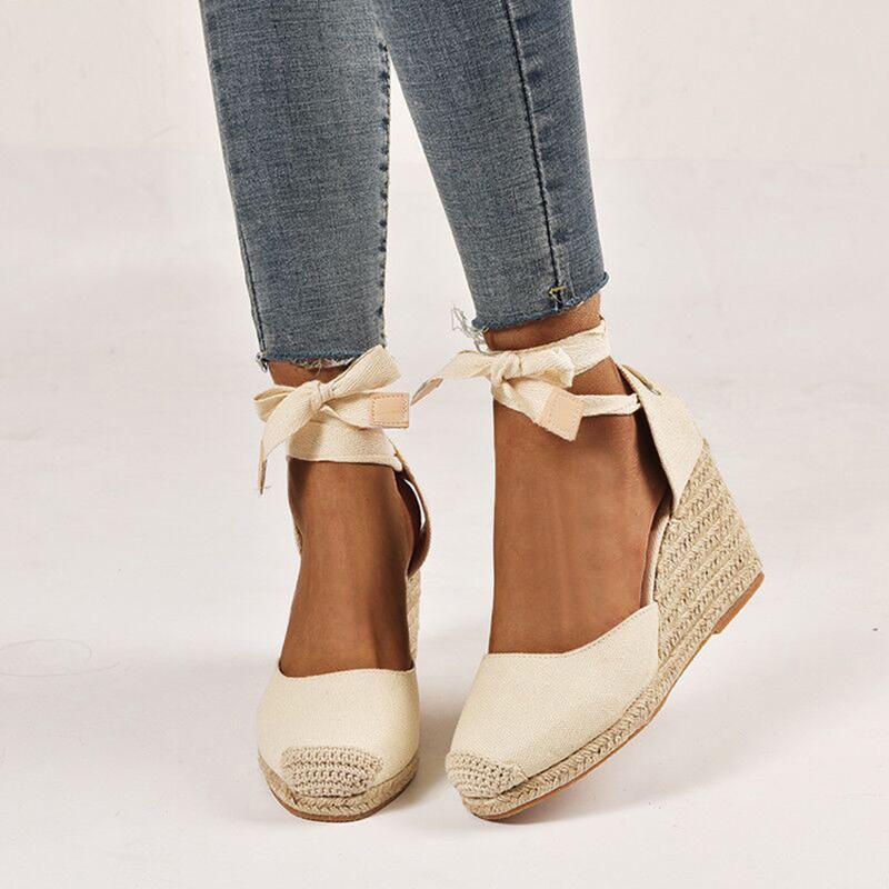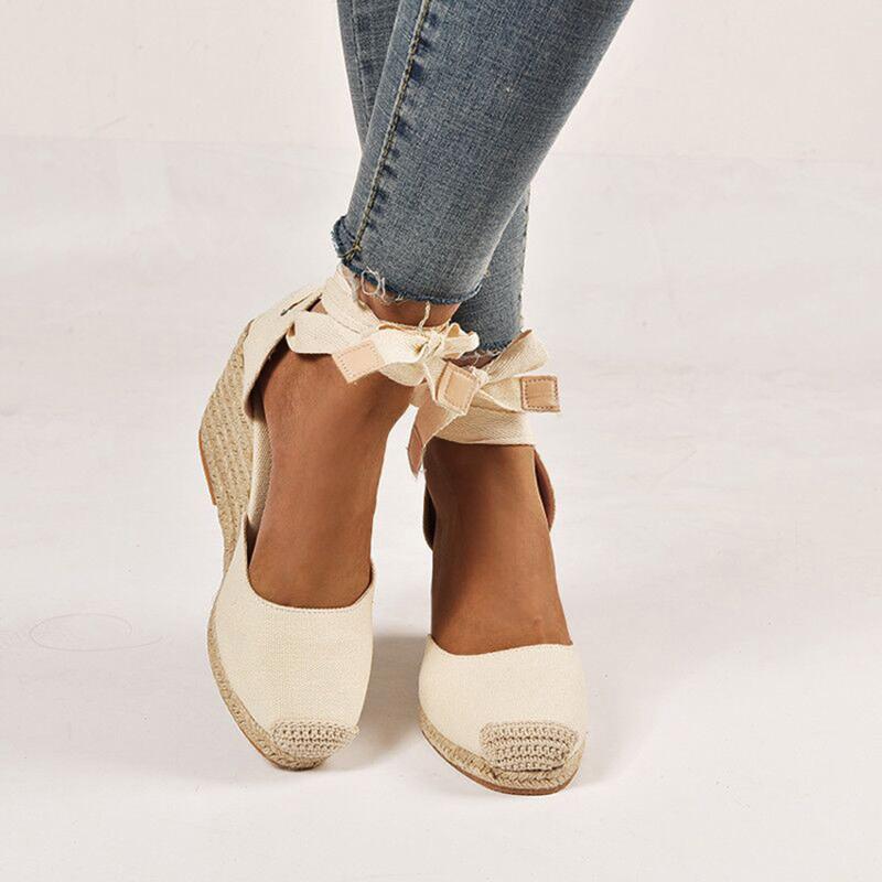 Women Chic Wedge Heel Lace Up Espadrille Sandals