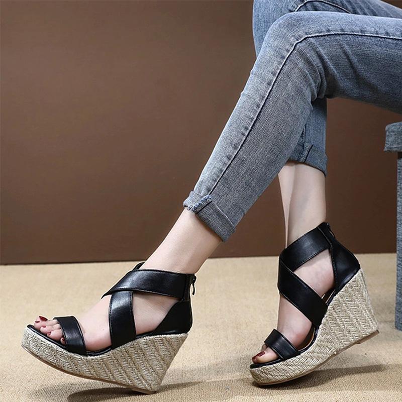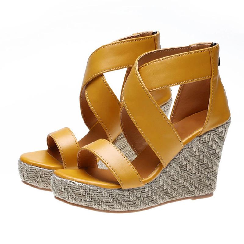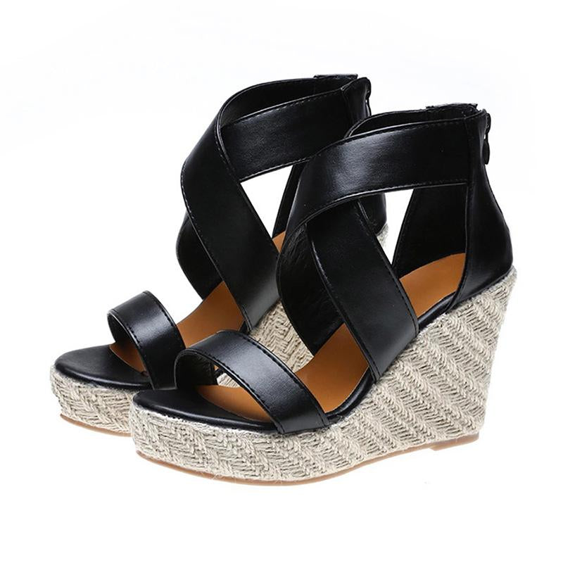 Product Name : Women Peep Toe Wedge Sandals Buckle Espadrille Shoes