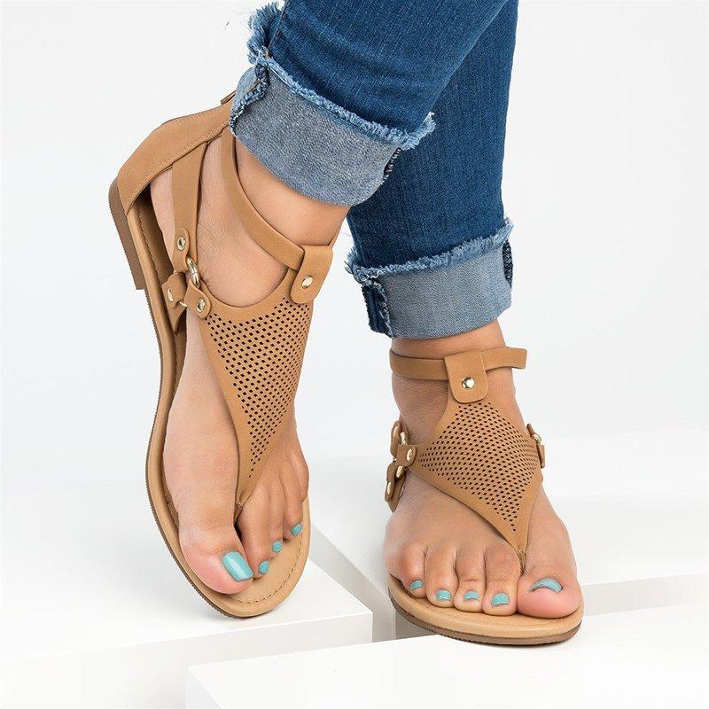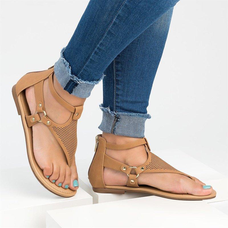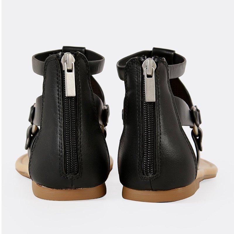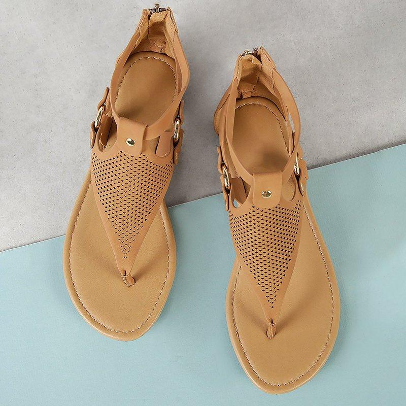 Women Plus Size PU Hollow-out Sandals Casual Zipper Shoes